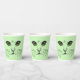 Diese Papiertassen sind hellgrün mit einer schwarzen Abbildung des Gesichts einer Katze mit langen Flüstern und dunkelgrünen Augen.