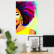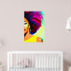 Das atemberaubende Aquarellporträt-Poster einer erbitterten schwarzen Frau, die ein lebendiges, gelbes Outfit mit einem kühnen lila Afro und einem weichen Seitenauge trägt. Dieses auffällige Stück verleiht jedem Zimmer eine Touch von Lebendigkeit und Persönlichkeit.