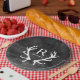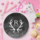 Ein Schwarzweiss-Watercolorhintergrund mit subtilem spritzt und Malerpinselanschläge legt den Grundstein für einen schönen, trendy Partyzusatz. Personifizieren Sie ihn mit Ihrem Namen und Monogramm! Ein Paar rustikale weiße europäische Rotwildgeweihe fügt eine Touch des Landes hinzu. Passt Themen im Freienmit modernem Flair.