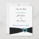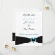 Nehmen Sie eine Hochzeitseinladung mit eleganter Einfachheit, die mit einem schwarzen Band am unteren Rand geschmückt ist und durch ein aquamarines Herz mit weißen Punkten hervorgehoben wird. Personalisieren Sie es mit den Namen und das Datum der Hochzeit, wie Sie möchten.