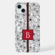 Stilvoll und feminin blumengeschmückt mit handgezeichnet Ästhetik. Dieses klassische Schwarz-Weiß-Muster besticht durch ein modernes, mit Skizzen gestaltetes Line-Art-Look und passt sich dieser niedlichen Handydose an, die der Besitzer für zusätzliche persönliche Details in Rot vorgestellt hat.