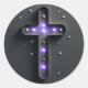 Schwarzes Christkreuz mit Lila Licht Runder Aufkleber