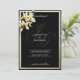 Eine elegante, hellgraue Monogramm-Initiale mit stilvollen romantischen Schwarz-Elfenbein-Orchideen Blumen-Einladungen.