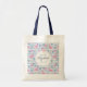 Tasche mit einem Muster mit lustiger Sommeratmosphäre. Rosa Flamingos und Ananas Set auf einem hellblau gestreiften Muster mit Blätter und Herzen herum.