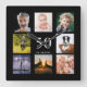Eine Wanduhr als Geschenk für einen 50. Geburtstag (oder jedes Alter) eines Typ, der sein Leben mit einer Collage von 8 eigenen Fotos feiert. Personalisieren und hinzufügen Alter 50 und ein Datum. Geburtsdatum oder das Datum des Jahrestages. Weiße Buchstaben. Schwarzer Hintergrund.