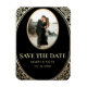 Elegante, luxuriöse, Vintage, schicke, schwarze und goldene Hochzeit bewahren den Datums-Einladungsmagneten mit kunst-Deko Blumenrahmen und Foto des Paares.