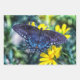 Ein Schmetterling aus schwarzem Frack steht auf gelben Blumen. Foto von Ruth Jolly.