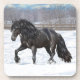 Schwarz Friesischer Licht Zugpferd in Schnee.