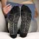 Dieses Gold und Schwarz Astrologisches Muster ist ein mehrschichtiges, zweifarbiges Himmelsdesign von goldfarbenen Bildern auf einem schwarz gemalten Hintergrund. Jede Ebene hat eine andere Transparenz, sodass jeder Planet, jede Sonne, jeder Mond und jeder Stern in ihrer Gesamtheit gesehen werden können.