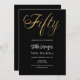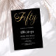 Eine moderne, stilvolle Einladung zu einer 50. Geburtstagsfeier für ihn und sie. Schwarzer Hintergrund und das Wort 50 geschrieben mit großen Imitaten goldenen Buchstaben. Personalisieren und fügen Sie einen Namen und Party-Details hinzu.