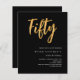 Eine moderne, einfache Einladung für eine 50. Geburtstagsfeier für ihn und sie. Klassischer schwarzer Hintergrund und das Wort "50" mit goldenen Großbuchstaben aus Imitat. Personalisieren und fügen Sie einen Namen und Party-Details hinzu. Weißer Text. 1 Blatt = 1 Einladung mit Druckkante bis Kante.