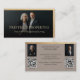 Erzeugen Sie einen bleibenden Eindruck mit unserer prestigeträchtigen Luxus-Immobilienkanzlei-Gold- und Schwarz-Luxus-Visitenkarte, die für zwei Immobilienmakler konzipiert ist, die Wert auf Raffinesse und Stil legen. Die Vorderseite zeigt ein vollständiges Fotolayout, das mit einer eleganten, falschen Gold-Eckenbetonung entlang der oberen und rechten Kanten gerahmt ist, ergänzt durch Ihren Firmennamen und Slogan, die über einem dezenten, schwarzen transparenten Overlay platziert sind, um eine einfache Lesbarkeit zu gewährleisten. Die Rückseite ist durchdacht für zwei Agenten gestaltet und ermöglicht es Ihnen, individuelle Fotos, QR-Codes für den direkten Kontaktzugang und wesentliche Geschäftsinformationen wie Adresse und Telefonnummer ordentlich in der Mitte zu präsentieren. Ein schlanker, falscher Goldstreifen vervollständigt das luxuriöse Design. Vollständig anpassbar, ermöglicht Ihnen diese Vorlage, Farben, Schriftarten, Bilder und Details perfekt an Ihre Marke anzupassen. Ideal für Immobilienfachleute, Anwaltskanzleien und Geschäftsführende, die ein raffiniertes, hochwertiges Aussehen