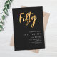 Eine moderne, stilvolle Einladung zu einer 50. Geburtstagsfeier für ihn und sie. Klassischer schwarzer Hintergrund und das Wort "50" mit goldenen Großbuchstaben aus Imitat. Personalisieren und fügen Sie einen Namen und Party-Details hinzu. Weißer Text.