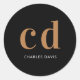 Schwarzes Gold Monogramm Initialen minimalistisch Runder Aufkleber