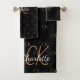 Schwarzes Gold Monogramm Initialen Namensskript el Badhandtuch Set