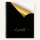 Elegant, unterhaltsam und modern in Schwarz, Imitat Gold Metall und Weiß. Mit einer Illusion des Abreißeffekts. Eine Uni regierte Notizbuch für Jugendliche und Frauen. Personalisieren Sie Ihren Namen und fügen Sie ihn hinzu. Der Name ist mit einem modernen handgeschriebenen Stilskript geschrieben. Goldene Buchstaben. Um die Swashes behalten, löschen Sie nur den Beispielnamen, verlass die Leerzeichen oder Emoji's vor und nach dem Namen.