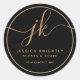 Monogram Script Logo Black Gold Round Aufkleber. Eleganter Business-Aufkleber oder Produktetikett mit einem Monogramm-Initiallogo in extravaganter Kalligraphie-Schrift mit Swashes und Ihrem benutzerdefinierten Text in allen Farben (in Gold auf schwarz). ÄNDERUNGEN: Ändern Sie den Stil, die Farbe, die Größe, den Abstand und die Platzierung des Schriftartes bzw. die Hintergrundfarbe und die Rahmenfarbe des Kreises in EDIT, um sich mit Ihrer Marke abzustimmen. HILFE: Für Hilfe bei der Designänderung oder wenn Sie Artikel koordinieren möchten, wenden Sie sich bitte an den Designer, BEVOR er Bestellung über die Zazzle Chat MESSAGE Registerkarte oder per E-Mail makeitaboutyoustore@gmail.com.
