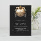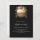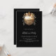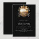 Eine Einladung für ein Weihnachtsfest. Klassischer schwarzer Hintergrund. Die Einrichtung ist mit einem großen goldfarbenen Vintagen Bauble gestaltet. Personalisieren und fügen Sie die Details hinzu.