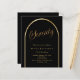 Eine elegante Einladung zum 70. Geburtstag. Ein schwarzer Hintergrund mit einem goldenen Bogen auf der Vorderseite. 1 Blatt = 1 Einladung mit Druckkante bis Kante.