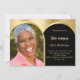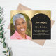 Fügen Sie Ihr eigenes Foto in vertikaler Größe hinzu. Ein bogenförmiger Rahmen aus Foto. Schwarz und Imitat goldene Hintergrundfarbe. Personalisieren und fügen Sie einen Namen und Party-Details hinzu.