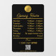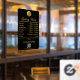 Ein schwarzes goldenes Skript, das die Geschäftszeiten öffnet und Fenster mit Firmenlogo, QR-Code, Ihren persönlichen Social Media-Icons und Kontaktdetails speichert. Ein personalisiertes Schaufenster für Schaufenster und Türschilder. Ideal für einen Geschäftshändler, der seine Kunden über seine Öffnungszeiten informieren möchte.