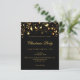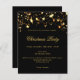 Eine Einladung für ein Geschäft, Firma Weihnachten Party. Klassischer schwarzer Hintergrund. Mit goldenen Sternen dekoriert. Personalisieren und fügen Sie die Details hinzu. 1 Blatt = 1 Einladung mit Druckkante bis Kante.