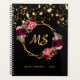 Ein schicker schwarzer Hintergrund. Die Einrichtung besteht aus einem geometrischen Rahmen in den Imitaten mit goldenem Rahmen und bordeauxroten, rosa und goldfarbenen Blume mit Blumenmotiven. Imitate tropfen goldene Sterne. Personalisieren und fügen Sie Ihre Monogramm Buchstaben, Initialen und einen Text, Titel. Ideal für Schule, Arbeit oder Organisation Ihres Privat-/Familienlebens.