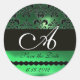 SCHWARZES GREEN JADE DAMASK-MONOGRAMM Save the Dat Runder Aufkleber