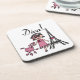 Diva-T-Shirts, Bodysuits, Becher, Taschen, Karten, Aufkleber, Schlüsselketten, Kissen, Wanduhren und viel mehr mit einem niedlichen Divaentwurf, der ein schwarzes behaartes Mädchen in einem Hut und in einem rosa Kleid mit ihrem rosa Pudel nahe dem Eiffel-Turm kennzeichnet!
