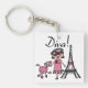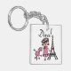 Diva-T - Shirts, Bodysuits, Tassen, Taschen, Karten, Aufkleber, Schlüsselketten, Kissen, Wanduhren und viel mehr mit einem niedlichen Divaentwurf, der ein schwarzes behaartes Mädchen in einem Hut und in einem rosa Kleid mit ihrem rosa Pudel nahe dem Eiffel-Turm kennzeichnet!
