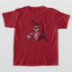 Diva-T - Shirts, Bodysuits, Tassen, Taschen, Karten, Aufkleber, Schlüsselketten, Kissen, Wanduhren und viel mehr mit einem niedlichen Divaentwurf, der ein schwarzes behaartes Mädchen in einem Hut und in einem rosa Kleid mit ihrem rosa Pudel nahe dem Eiffel-Turm kennzeichnet!