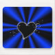 schwarzes Herz mit Sternchen auf blau - schwarz Mousepad