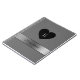 Schwarzes Herz mit Monogramm und Silberstreifen, grauer Hintergrund