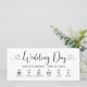 Moderne schwarz-weiße Hochzeitstundenkarten mit stilvollem Typografie-Design mit Hochzeitstag-Icons, Timing-Informationen, chic Kalligraphie-Skript und Herzakzenten. Der einfache und elegante Text, der mit den Braut- und Bräutigamen, dem Hochzeitstermin und den Details der Zeitleiste vollständig personalisiert werden kann.