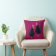 Auf einem reversiblen, heißen Magenta und rosa Hintergrund sind zwei schwarze Hühner abgebildet