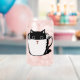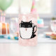 Die süße kleine Katze sitzt in einer Kaffeetasse, die mit rosa Nase dekoriert ist