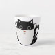 Schwarzes Kätzchen mit roter Nase, das sich in ein Milchtasse