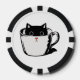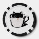 Schwarzes Kätzchen mit roter Nase, das sich in ein Pokerchips