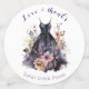 Schwarzes Kleid lila Blume Brautparty Konfetti
