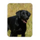 Schwarzer Labrador Retriever Hund stehend in einem Feld.