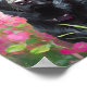 Ein beeindruckendes, modernes Kunstportrait eines Set aus schwarzem Labor vor einem abstrakten, rosa und grünen Garten. Die dunkle Silhouette des Hundes kontrastiert wunderbar mit den lebhaften, wirbelnden Gartenfarben, die Natur und Tier in einem ausdrucksvollen, zeitgenössischen Stil vereinen. Die abstrakten Pinselstriche schaffen ein Gefühl von Bewegung und Energie und machen dieses einzigartige Stück spielerisch und visuell faszinierend.