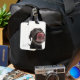 Schwarzes Labrador, das seine Nase leckt Gepäckanhänger