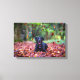 Schwarzes Labrador in Herbstlauben Leinwanddruck