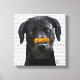 Schwarzes Labrador mit Knochen auf der Nase Leinwanddruck