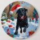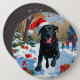 Schwarzes Labrador Weihnachtsfest Schneeszene Button