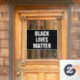 Sprich mit diesem Fenster "Black Lives Matter" gegen Gewalt und systemischen Rassismus gegenüber der afroamerikanischen Gemeinschaft aus.