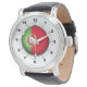 Schwarzes Leder auf der portugiesischen Flagge Armbanduhr
