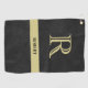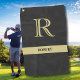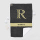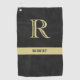 Schwarzes Leder Textur Monogram Name Gold Golfhandtuch
