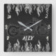 Schwarzes Leder und Silber Flammen Feuermotorräder Quadratische Wanduhr