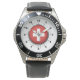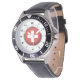 Schwarzes Lederband mit der Flagge der Schweiz Armbanduhr